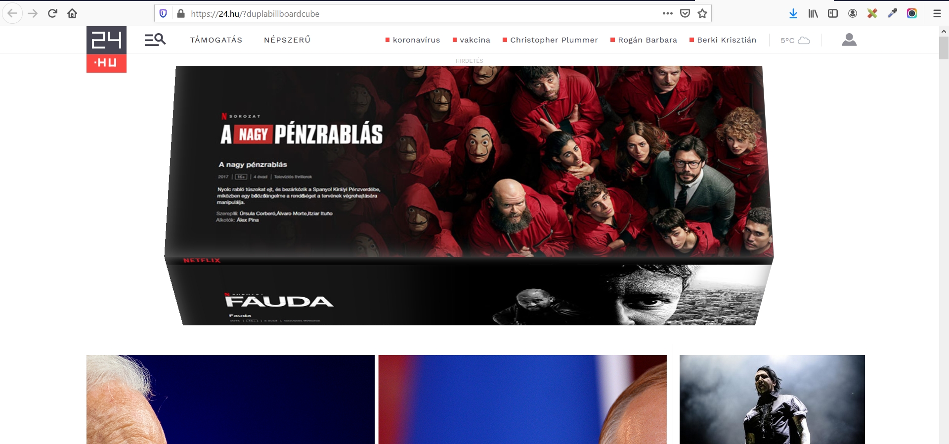 A big billboard cube a hagyományos billboard banner helyén, a fejléc zónában futó interaktív megjelenés, amely egy vízszintes tengelye körül forgó, négyoldalú “hasábot” jelenít meg. A banner 4 oldala több kép, egymásra épülő üzenet, sztori megjelenítésére is alkalmas.